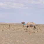 Eine lange Fahrt durch die endlose Steinwüste. Unsere Reiseleiterin Zaya machte mongolische Teigtäschen in der Übernachtungsjurte und abends warteten wir den Durchzug der Regenfront ab bis war dann im Abendlicht Bayan Zag, die Dinosaurierfundstelle, besuchten.